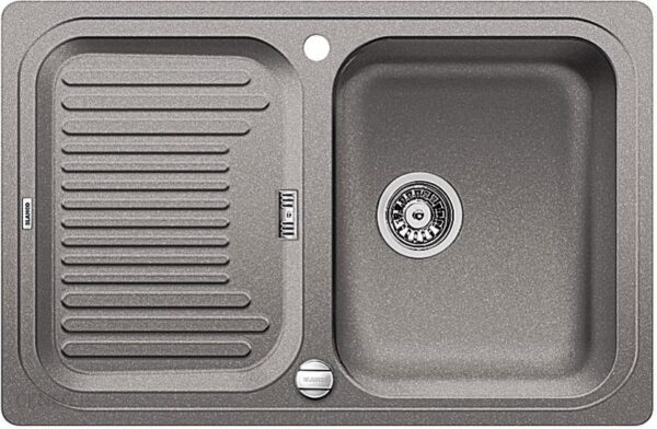 Zlewozmywaki kuchenne – Zlewozmywaki granitowe (Silgranit® PuraDur® II)Ilość komór 1 komoraSzerokość szafki 45 cmKolor AlumetalikSposób montażu Wpuszczany w blatWykończenie Silgranit® PuraDur® IIModel BLANCO CLASSICGrupa PremiumPołożenie OdwracalnyZlewozmywaki BLANCO z kompozytu SILGRANIT urzekają eleganckimi, pięknymi kolorami i atrakcyjnym wzornictwem. Silgranit składa się w 80% z naturalnego granitu. Granit w połączeniu z akrylem, ceramiką i kolorowym pigmentem uzyskuje swoje niezrównane właściwości. Kamienno-jedwabista, jednolita powierzchnia jest niezwykle przyjemna w dotyku. Dzięki doskonałym właściwościom materiału SILGRANIT jest wytrzymały i łatwy w utrzymaniu czystości. Zlewozmywak kuchenny – ma jedynie 78 cm długości – pasuje nawet do najmniejszej kuchni. Jedna komora z oddzielnym odpływem ociekacza. Ociekacz otoczony podwyższoną krawędzią. Wyposażenie za dodatkową opłatą: deska do krojenia i kosz na naczynia z suszarką na talerze. Model zlewozmywaka dostępny również w wersji do montażu na równi z blatem. Oddzielne odprowadzenie wody z ociekacza jest niezwykle komfortowe: gdy w komorze głównej myją Państwo owoce i warzywa, woda kapiąca z umytych naczyń odprowadzana jest drugim odpływem.Głębokość komory : 175 mmSposób montażu : wpuszczony w blatSzerokoś szafki dolnej : 45cmW cenie zawarte są:armatura przelewowo-odpływowa, korek automatyczny 3 ½” z sitkiem.