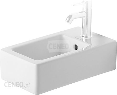 Duravit – Vero – Umywalka mała z przelewu, z półką na baterię, 25×45 mm, nr kat 07022500001 przygotowany otwór na baterięKONSEKWENTNIE PROSTOKĄTNA, KONSEKWENTNIE ODNOSZĄCA SUKCESY: SERIA VERO JEST WYRAZEM NOWOCZESNEJ KLASYKI.Ekran w kinie czy monitor komputera, lodówka czy karton mleka, pokój, stół: nasz świat jest niewyobrażalny bez prostokąta. Być może dlatego Vero jest dla nas tak atrakcyjne: formy ceramiki z tej serii są całkowicie zdominowane przez kształt prostokąta. Jest to dominacja, która daje początek nowym możliwościom: Vero jest jedną z najbardziej wszechstronnych i zarazem imponujących serii Duravit jeśli chodzi o formy, funkcje oraz jakość.