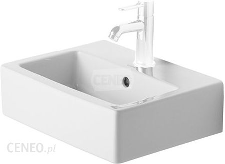 Duravit – Vero – Umywalka mała z przelewu, z półką na baterię, 45×35 mm, nr kat 0704450000bez otworu na baterięUwagi:Produkt występuje również w kolorze czarnym (więcej informacji u sprzedawcy)KONSEKWENTNIE PROSTOKĄTNA, KONSEKWENTNIE ODNOSZĄCA SUKCESY: SERIA VERO JEST WYRAZEM NOWOCZESNEJ KLASYKI.Ekran w kinie czy monitor komputera, lodówka czy karton mleka, pokój, stół: nasz świat jest niewyobrażalny bez prostokąta. Być może dlatego Vero jest dla nas tak atrakcyjne: formy ceramiki z tej serii są całkowicie zdominowane przez kształt prostokąta. Jest to dominacja, która daje początek nowym możliwościom: Vero jest jedną z najbardziej wszechstronnych i zarazem imponujących serii Duravit jeśli chodzi o formy, funkcje oraz jakość.