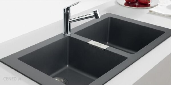 Wpuszczany w blat zlewozmywak 2-komorowy, wykonany z materiału Tectonite. Wymiary zewnętrzne 860 x 510 mm. Komory o wymiarze 350 x 410 mm i głębokości 200 mm. Przeznaczony do szafek o minimalnej szerokości 800 mm.