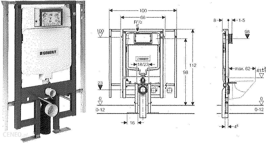 – do montażu w wąskich pomieszczeniach i wnękach- do miski wiszącej o rozstawie otworów 18 cm lub 23 cm- do pionowego odprowadzania ścieków- do wykonania instalacji naściennej nie na pełną wysokość pomieszczenia, na ścianie pełnej lub z płyty gipsowo-kartonowej- do montażu przed ścianą pełną lub ścianą z płyty gipsowej- do przyłączenia toalety myjącej Geberit AquaClean- nie nadaje się do osadzenia w betonieCharakterystyka:- profile boczne o regulowanym położeniu- zmienna szerokość elementów od 66 do 100 cm, bez profili bocznych 60 cm- przedłużone kolano odpływowe- mocowanie kolana odpływowego o regulowanej głębokości- rama o profilu C 4×4 cm- rama malowana proszkowo, niebieski ultramaryna- zabudowana warstwa pokrycia- minimalna grubość pokrycia na elemencie montażowym 1 cm- mocowanie kolana odpływowego izolowane akustycznie- samonośny- wysokość zabudowy 112 cm- mocowanie ceramiki M12, odstęp między mocowaniami 18 cm lub 23 cm- spłuczka podtynkowa Geberit Sigma 8 cm (UP720), uruchamiana z przodu- spłuczka podtynkowa z izolacją przeciwroszeniową- obudowa ochronna otworu serwisowego do montażu i skracania bez użycia narzędzi- przyłącze wody na górze, z boku przesunięte w lewo- uniwersalne przyłącze wody, odpowiednie do systemu MeplaFix, do montażu i obsługi bez użycia narzędzi- wężyk łączący z zaworem kątowym do przykręcenia bez użycia narzędzi- popychacze z wytłumieniem dźwięków, szybkie ustawianie bez użycia narzędzi- funkcja „stop” z przyciskiem uruchamiającym Mambo lub Tango- spłukiwanie jednoilościowe z przyciskiem uruchamiającym Sigma10, Mambo, Tango- spłukiwanie dwudzielne, przeznaczone do przycisków uruchamiających Geberit Sigma20, Sigma50, Samba lub Bolero- możliwość ustawienia ilości wody spłukującej- głębokość kolana odpływowego w przypadku przyłącza pionowego 9 cm- nóżki ocynkowane, regulowane w zakresie od 0 do 12 cm- samohamujące nóżki, do wyrównywania elementu bez użycia narzędzi- głębokość zabudowy 8 cm- zakres ciśnienia przepływu: 0,1-10 bar- maksymalna temperatura robocza wody 25°C- zakres ustawień dla spłukiwania z niewielką ilością wody: 3l- zakres ustawień dla spłukiwania z dużą ilością wody 6/9l- ustawienie fabryczne ilości wody do spłukiwania 6 i 3 l- ilość wody do spłukiwania z funkcją „stop” 6/9lZestaw zawiera:- przyłącze wody R 1/2″ z wbudowanym zaworem kątowym i kółkiem ręcznym- 2 zaślepki ochronne- kolanko spłuczki- obudowę ochronną otworu serwisowego- 2 pręty gwintowane M12 do zamocowania ceramiki- zestaw króćców przyłączeniowych, ø 90 mm- kolano odpływowe do WC, PE-HD, ø 90 mm, przedłużone- króciec odpływowy do toalety, PE-HD, ø 90 mm- materiał mocujący- uszczelkę wargową EPDM ø 90/110 mm- rurkę ochronną do przyłącza wody do Geberit AquaClean- 2 kotwy ścienne