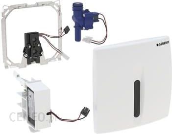 – do montażu w skrzynce montażowej pisuaru dla armatury ukrytej- do automatycznego uruchamiania spłukiwania pisuarów- do montażu w elementach instalacyjnych pisuarów z uruchamianiem z przodu- nie nadaje się do montażu w elemencie instalacyjnym pisuaru Joly z boczną obudową podtynkową- nie nadaje się do montażu w elementach instalacyjnych pisuarów z uruchamianiem z góry- do zastosowania z elementem montażowym Geberit DuofixBasic o nr art. 111.665.00.5- automatyczne uruchamianie spłukiwania, regulowane przez użytkownika- czujnik podczerwieni z funkcją wytłumienia tła- gotowe do działania po podłączeniu zasilania- uruchamianie na wypadek przerw w dopływie prądu- możliwe dokonanie i wybór ustawień uruchamiania spłukiwania za pomocą pilota Geberit Service-Handy- możliwość dezaktywacji za pomocą pilota Geberit Clean-Handy- dynamiczne dostosowanie czasu spłukiwania- zasilanie z sieci- płytka przykrywająca z tworzywa sztucznego, z ryglem zabezpieczającymDane techniczne:- napięcie znamionowe: 110-240 V AC- częstotliwość sieciowa: 50-60 Hz- pobór mocy: <0,5 W- napięcie robocze: 4,5 V DC- stopień ochrony: IP45- przepływ/ 1 bar bez ogranicznika przepływu: 0,3 l/s- przepływ/ 1 bar z ogranicznikiem przepływu" 0,22 l/s- ciśnienie robocze: 1-8 bar- maksymalne ciśnienie próbne wody: 16 bar- maksymalne ciśnienie próbne powietrza/gazu obojętnego: 3 bar- maksymalna temperatura robocza wody: 30 ºC- względna wilgotność powietrza: < 100 %- ustawienia fabryczne czasu spłukiwania: 4 s- zakres ustawień dla czasu spłukiwania: 3-15 s- ustawienia fabryczne czasu przebywania: 7 s- zakres ustawień dla czasu przebywania: 3-15 s- ustawienia fabryczne spłukiwania okresowego: 24 h- zakres ustawień spłukiwania okresowego: 1-168 h- przepływ obliczeniowy: 0,3 l/sZestaw zawiera:- osłonę z okienkiem czujnika podczerwieni- sterownik na podczerwień, zamontowany na ramie montażowej- zasilacz- zawór elektromagnetyczny- materiał mocujący