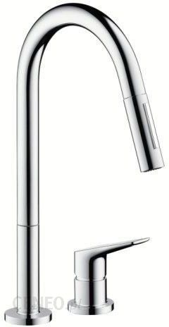 2-otworowa bateria kuchenna z wyciąganą wylewką, DN15wylewka obracalna o 110°/150°mieszacz ceramicznyprzepływ przy cieśnieniu 3 bar 13 l/min.perlator QuickClean®dowolność w usytuowaniu uchwytumoże współpracować z przepływowymi podgrzewaczami wody