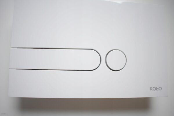 Przycisk do stelaża Slim iplate marki Koło. Jest to dwudzielny przycisk przeznaczony do kompletowania ze stelażem podtynkowym Slim. Wykończenie w kolorze białym idealnie komponuje się z niemal każdym stylem aranżacji łazienki.