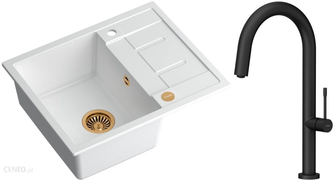 Quadron Granitowy Morgan 116 Snow White/Miedź + Bateria Haley T-Line Czarny Mat HB8210U1C1+3623522BLM