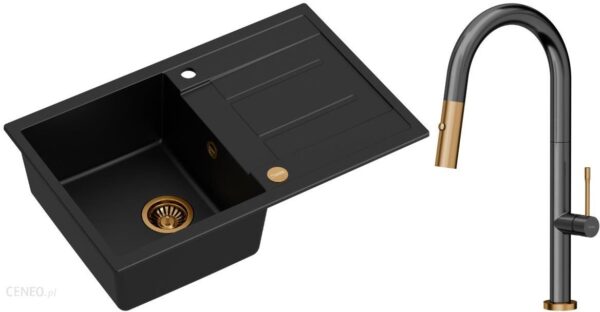 Quadron – zlewozmywak wpuszczany granitowy MORGAN 111 pure carbon / miedź odwracalny z baterią FELICITY Tline graphite metal / miedź szczotkowana 44 c