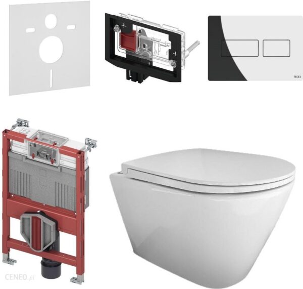 Zestaw WC podtynkowy Rak RESORT Rimless + deska SLIM + stelaż TECE 82 cm + SOLID chrom + pojemnik na kostkę + mata