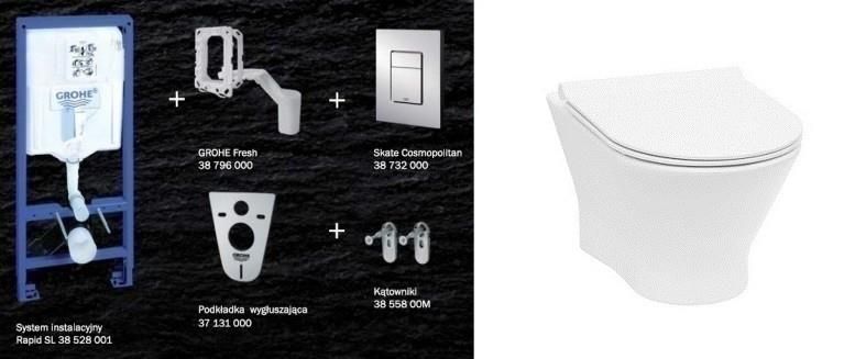 Zestaw 7w1 – gotowy do montau !!!Elementy zestawu:1.Stela Grohe 5w1 – 38827-stela podtynkowy do wc 113cm 38 528 001-wsporniki montaowe 38 558 00M-przycisk Skate Cosmopolitan chrom poysk 38 732-zestaw Grohe Fresh 38 796-podkadka wyguszajca 37 1312.Muszla i deska wolnoopadajaca Roca NEXO RIMLESS – A34H64L000-muszla wiszca – A34664L000-deska wolnoopadajca slim – A801C4200U
