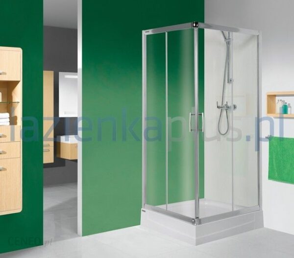 – narożna, typ KN/TX5 + brodzik Bza- kabina z drzwiami rozsuwanymi- kolor profili: biały EW- wypełnienie: szkło hartowane 5 mm, wzór Cora CR- wymiary podstawowe: 800 x 800 mm- wysokość A: 2050 mm- zakres regulacji: B/C: 780-795 mm- szerokość wejścia X: 440 mm- głębokość brodzika: 50 mm- system jezdny oparty jest o pojedyncze rolki łożyskowe mocowane w tafli szkła oraz odpinane rolki dolne- szczelność zapewnia uszczelka magnetyczna- chromowane uchwyty, mogące pełnić również funkcję wieszaka- regulowane profile przyścienne pozwalają na zniwelowanie krzywizny ścianyZestaw zawiera:- kabinę- brodzik zabudowany Bza- nóżki do brodzika Bza- syfonZdjęcie przedstawia wariant kabiny z profilami srebrnymi i szkłem transparentnym.