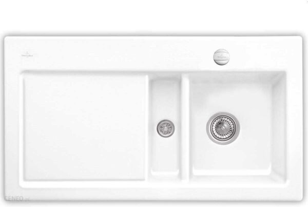 Subway 50 V&B zlewozmywak ceramiczny 915×510 mm White Alpin (połysk) – 671302R1Parametry techniczne: – Długość zlewozmywaka kuchennego: 915 [mm] – Szerokość zlewozmywaka kuchennego: 510 [mm] – Minimalna podbudowa szafki: 500 [mm] – Materiał: ceramika z bezbarwną powłoką CeramicPlus® zapobiegającą osadzaniu się kamienia – Kolor: White Alpin (połysk) – Sposób montażu: wpuszczany w blat – Układ komór: komora prawa – Ilość komór: 1,5 – Średnica otworu pod baterię: 35 mm – Ociekacz: tak – Zamykanie odpływu: korek automatyczny (zamknięcie odpływu pokrętłem) – Kraj produkcji: Niemcy – Gwarancja producentaAkcesoria opcjonalne: – Zestaw deska+koszyk – Wycięcie jednego dodatkowego otworu 100 PLN np. na dozownik na płyn – Sitko stalowe – Do kompletowania z syfonem 137287, baterią zlewozmywakową, rozdrabniaczem odpadówCharakterystyka materiału: Ceramika jest standardowym higienicznym materiałem wykorzystywanym w kuchniach, czy szpitalach. Odporny chemicznie na typowe domowe kwasy lub zasady, Przyjazny dla środowiska w produkcji i utylizacji, Higiena – Ceramika jest bezsmakowa i bezwonna. Pielęgnacja i czyszczenie – Ceramika jest łatwa do czyszczenia. Ceramika wymaga niewiele wysiłku i czasu. Odporność – Ceramika jest bardzo odporna na wstrząsy, uderzenia i zarysowania. Solidność – ceramika jest odporna na ciepło i zimno, W zestawie plastikowa odsączarka do najmniejszej komory Otwory do wybicia: Standardowo 1, drugi za dopłatą. Jest możliwość zamówienia produktu bez otworów. Zlewozmywak kuchenny występuje w dwóch grupach kolorystycznych Classicline oraz Premiumline Uwaga czas realizacji niektórych kolorów zamówieniowych może się wydłużyć.Villeroy&Boch Zlewozmywak ceramiczny, czyni pracę w kuchni jeszcze bardziej wygodną i bezproblemową. Nowoczesny wygląd nadaje przestrzeni w której jesteśmy, jeszcze więcej elegancji.